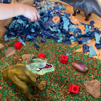 This was meant to be their excavation site. I set them up with little lab stations that had fossil trays and brushes and tools to be paleontologists-- even gave them a notebook to make field notes! 😂